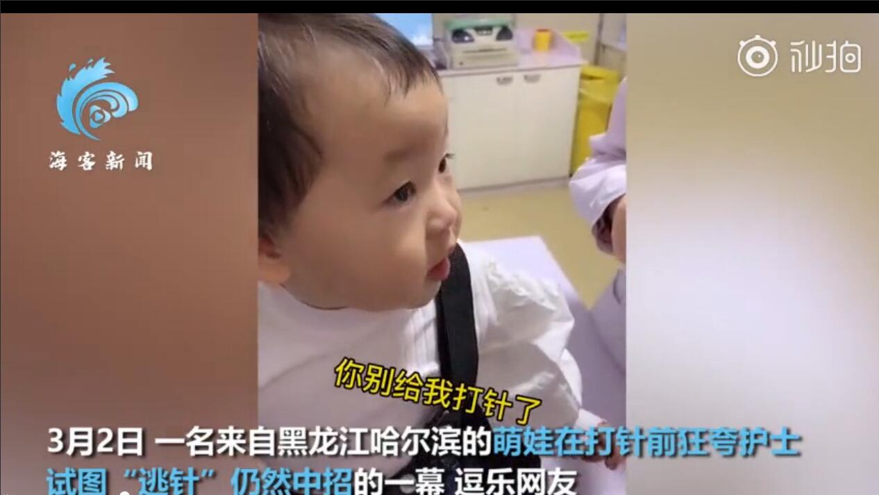 萌娃打针前狂夸护士漂亮想“逃针” ,结局亮了