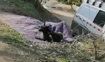 老旧房屋拆迁主人搬离 狗狗废墟前继续看家护院