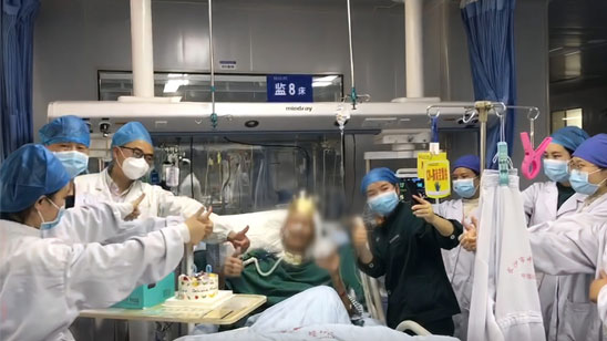 医生护士在ICU为90岁爷爷庆生 第二天老人病情好转