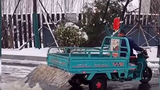 有模有样!河北大雪后大爷自创“扫雪车”引围观 零成本马力十足