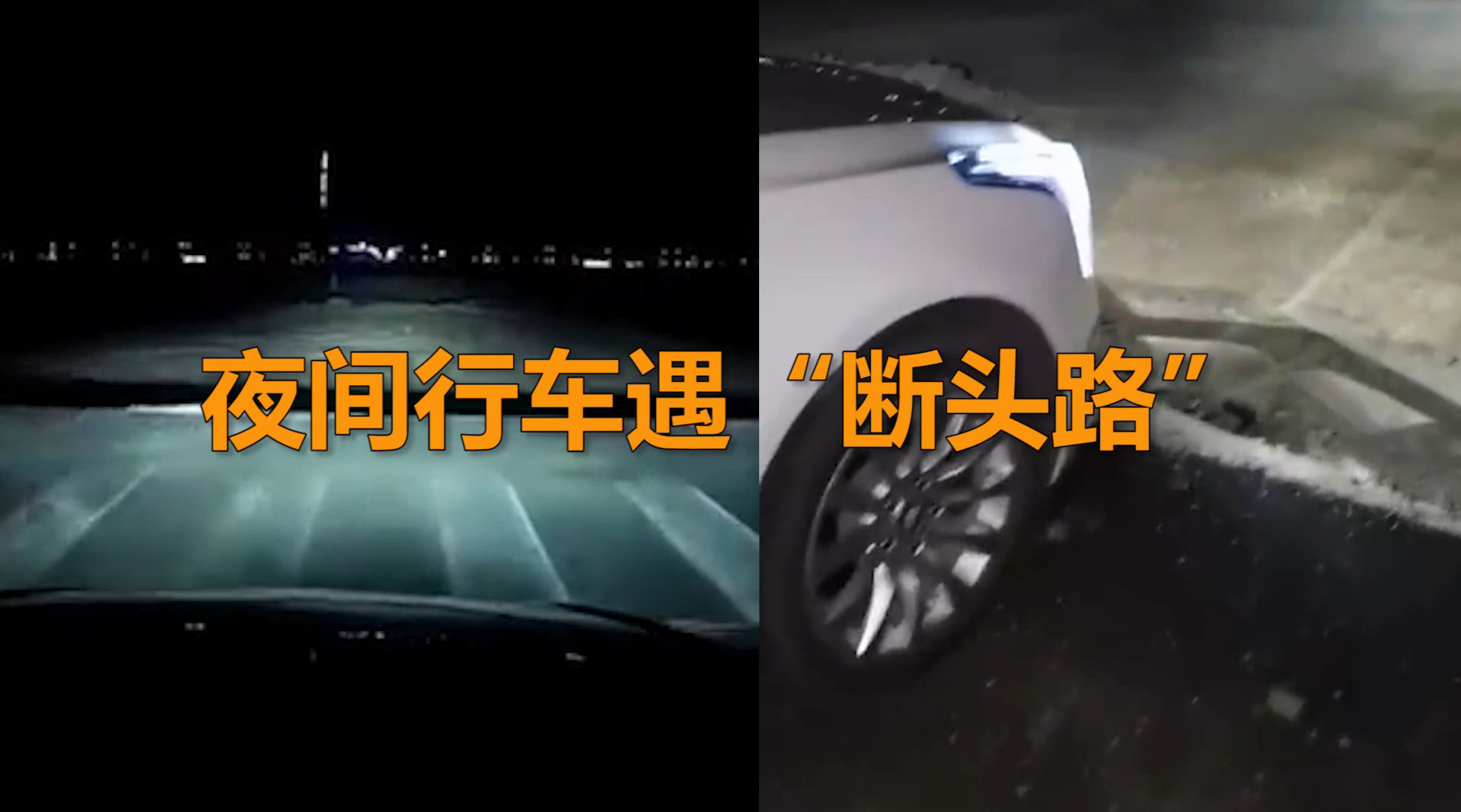 夫妻夜间行车突遇“断头路” 汽车“悬停”坑边好惊险!