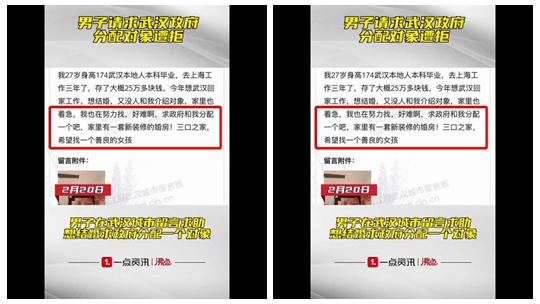 男子请求武汉政府分配对象遭拒:禁止包办婚姻