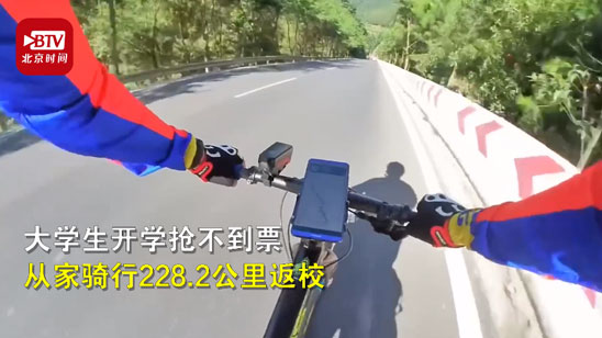 湖南大学生开学抢不到票骑行200多公里返校:这都不是事儿,2天骑到