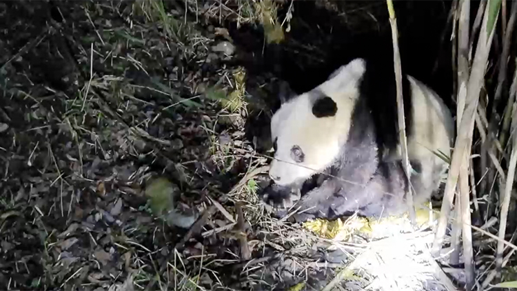 大熊猫流着鼻涕趴草丛一动不动 多部门徒步营救