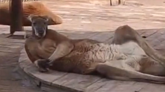动物园袋鼠“葛优瘫”引游客围观 旁边孩子直呼“像爸爸”