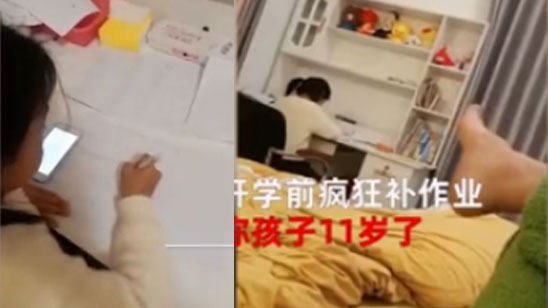 开学前一天孩子连夜赶作业 妈妈一旁抖腿“看戏”:假期一直玩