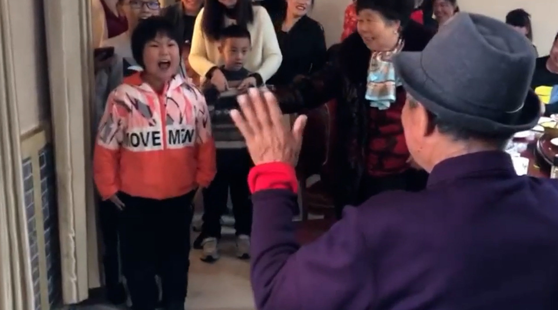 7岁女孩为80岁老姥爷霸气喊祝福 网友:来自灵魂的呐喊