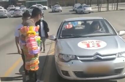 驾校教练身穿气球衣帮学员练车:车上装签子,扎破气球就压线了