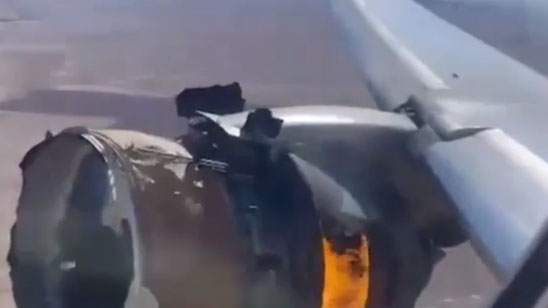 美一波音客机起飞后引擎爆炸 天空飘下碎片雨