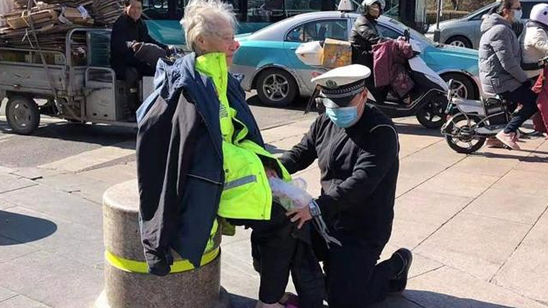 暖心!零下4度,辅警跪地为老人披衣暖脚