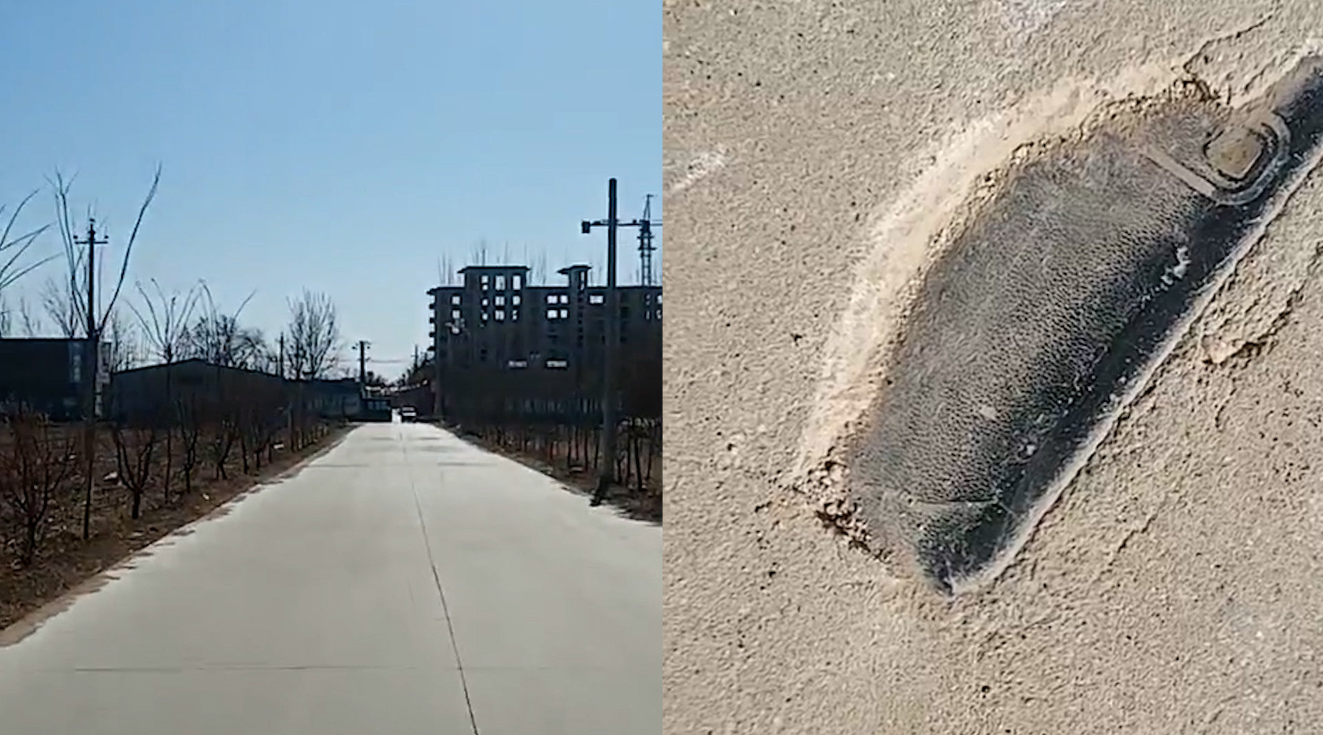 男子在路面下找到丢失3年的手机:没想到封水泥里,过两天挖出来