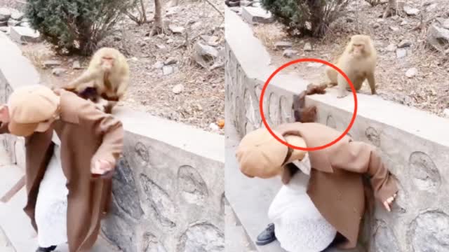 长发小姐姐投喂景区小猴 大猴嫉妒用力一扯 下秒“秃然”尴尬了