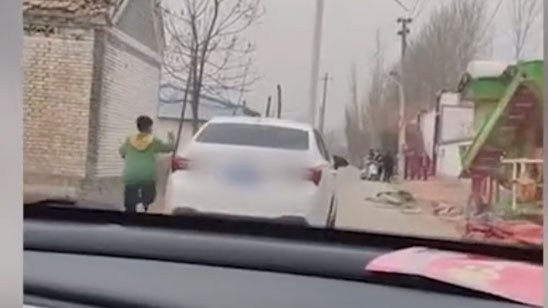 令人心酸!男孩一路奔跑追车 冲车窗用力挥手告别