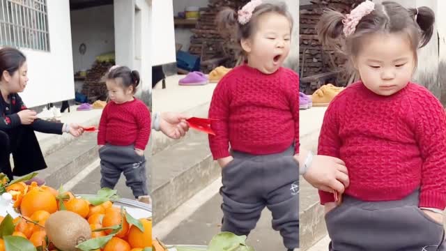 小女孩霸气拒收强塞红包:手插裤兜打着哈欠 强塞硬给直接丢