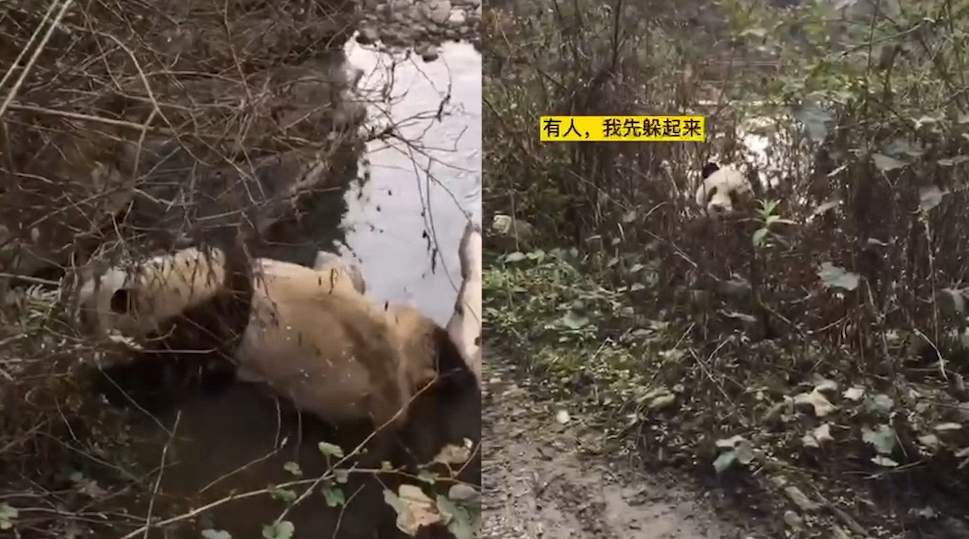 网友意外发现河中异样 偶遇野生大熊猫下山拜晚年 歪歪扭扭要过河