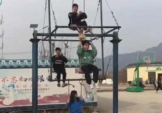 郑州村庄自制人力摩天轮 村民:掌握好平衡,玩起来很刺激