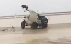 越野车户外飙车失控翻滚:车顶被锨开 副驾驶员被甩出