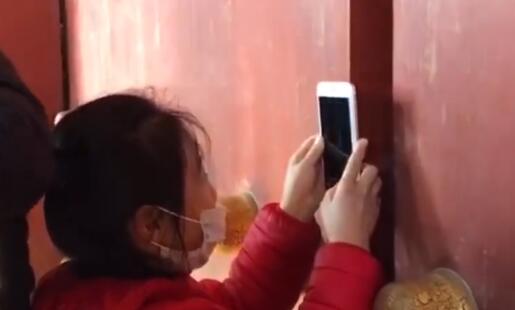 天坛祈年殿游客排队透过门缝拍照:构图奇特比较新鲜