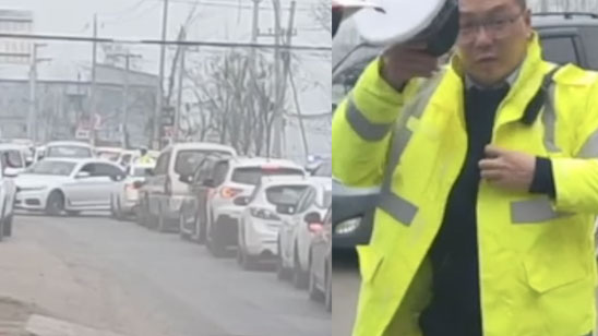 休假交警拜年遇大堵车 穿上制服秒切换工作模式