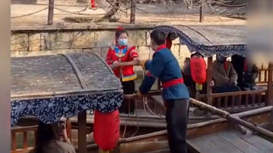 女孩到景区游玩欲撩划船小哥 猝不及防被喂了满满的狗粮