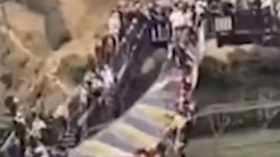 网红吊桥侧翻多人掉落 工作人员:非景区,人太多了