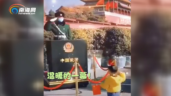 可可爱爱!小朋友与天安门前站岗武警相互敬礼