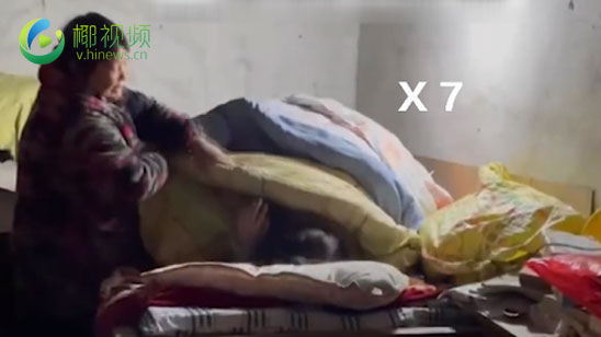 女生放假回奶奶家盖七床被子睡觉 被叫醒瞬间全程高能