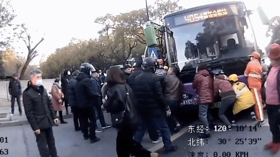 暖心!浙江杭州一七旬老人被卷公交车底 热心群众抬车救人