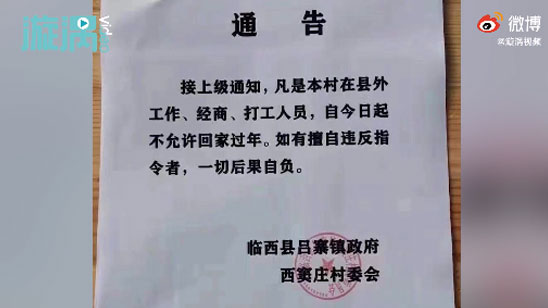 邢台某村发通知不许村民回家过年 村书记:通知发错了