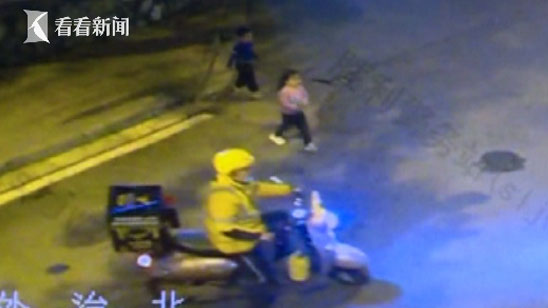 外卖小哥车流中“捡到”俩小孩 家长竟毫不知情