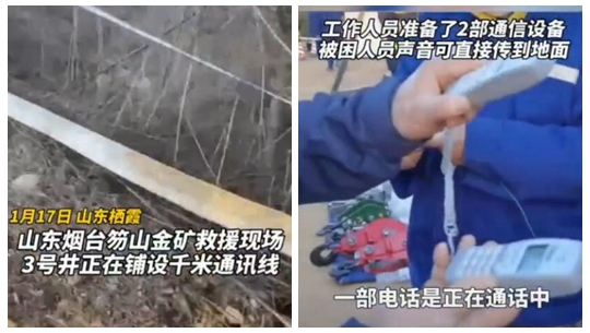 现场正铺设千米通讯线路,准备两部电话,被困人员声音或可传到地面