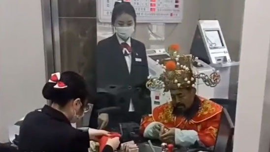 扮财神爷到银行反被劝说开户 知情人士透露:本来是去化缘的