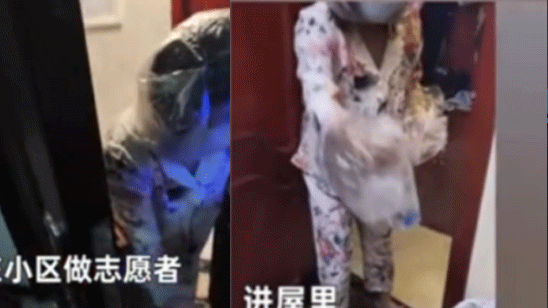 男子当志愿者回家被“隔离” 妈妈塑料套头当防护装备让他笑喷