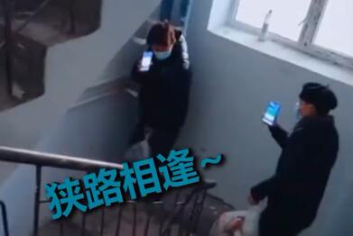 可可爱爱!疫情期间邻居在楼道狭路相逢 独特见面方式令人爆笑