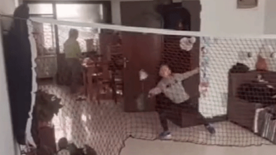 疫情期小区封闭 6岁男孩在客厅坚持练羽毛球 网友大赞:太棒了