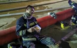 感动又心疼!消防员灭火19小时后抱着盒饭睡着