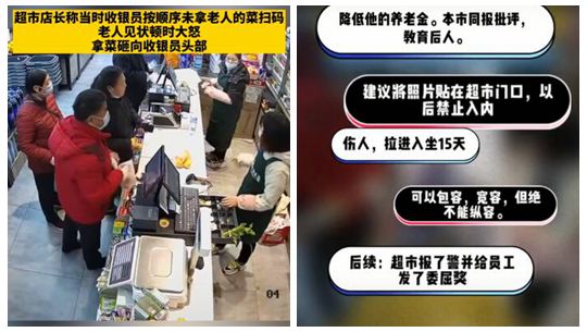 椰热点 | 老人疑插队未果抽打收银员 超市给该员工发了委屈奖 各方评论一边倒