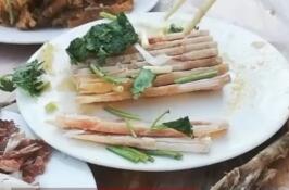 露天流水席凉菜被冻住夹不开 小伙用水涮着吃!