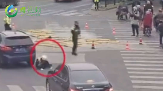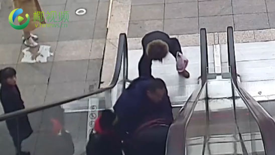 老人带小孩坐扶梯双双摔倒 消防员2秒冲上前施救