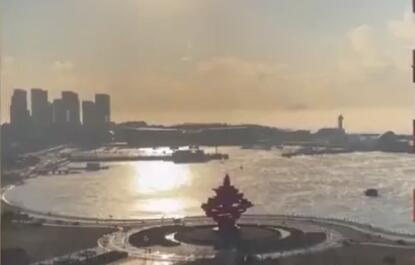 严寒天青岛现海浩奇观 海水蒸腾如开锅