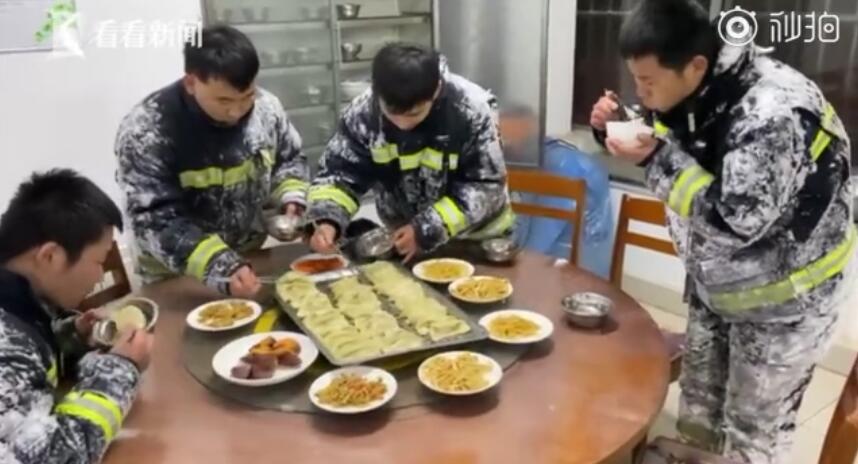 冻得拿不稳筷子!零下14度灭火战斗后 消防员吃饭全靠“抖”