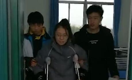 每天爬8层楼 老师意外受伤全班男生轮流背其上下课