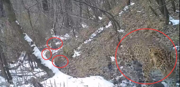 首次发现!秦岭拍到金钱豹全家福