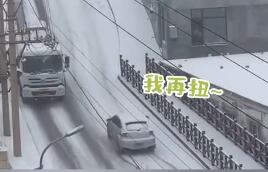 雪天汽车蛇皮走位爬上坡 拍摄者:只有它爬上去了!