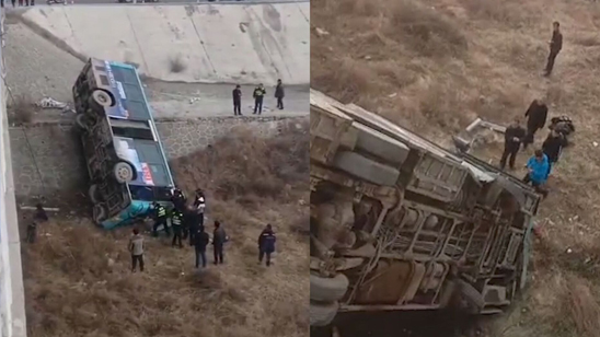 现场!甘肃天水一公交车坠入河道 系救护车与公交车相撞 有人受伤