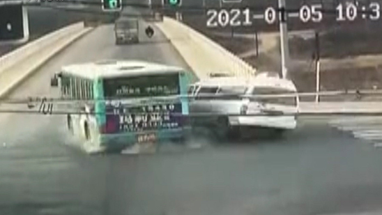 事发监控曝光!甘肃天水公交车和救护车相撞坠桥