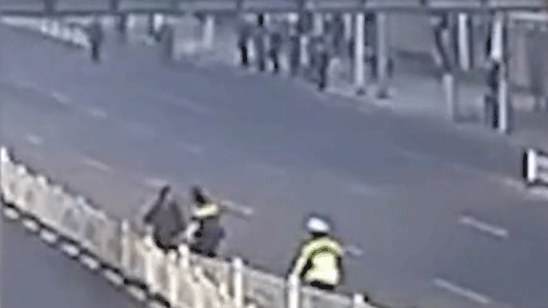 失明老人误入快车道 交警蜀黍上前搀扶暖心叮嘱:注意安全