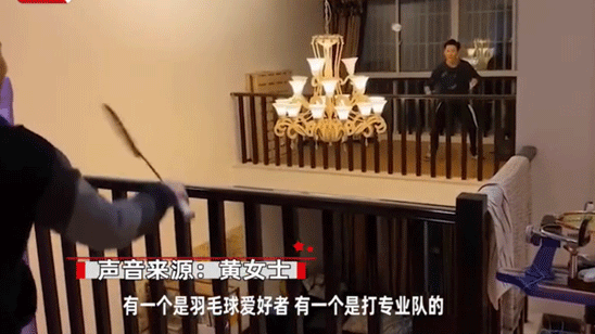 空间全利用!两男子复式房2楼隔空打羽毛球 穿过大吊顶高手过招