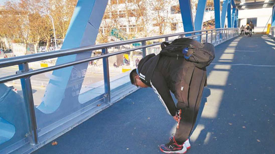 武汉天桥印满援鄂医疗队名 老人含泪鞠躬感谢