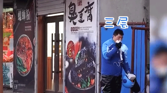 螺蛳粉有多臭?外卖小哥取餐全副武装 店外脱下3层防护后大口呼气